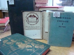 Татьяне Николаевне стало интересно: имеются ли такие раритеты в Витебске? Оказалось, да. В главном книжном храме Придвинья их нашлось 89, рассказала заведующая сектором иностранной литературы областной библиотеки Ирина Шанцева. Авторы некоторых произведений прекрасно известны читателям – например, Уильям Шекспир, Вальтер Скотт, Уильям Теккерей. Другие имена менее популярны. Среди них – Вера Бриттен, Чарльз Кингсли, Энтони Родс и другие. Издана литература в разные годы. Самые «древние» экземпляры датируются концом XIX века. Это иллюстрированные сборники Чарльза Диккенса, Джеймса Фенимора Купера и роман Даниэля Дефо «Жизнь и удивительные приключения Робинзона Крузо».