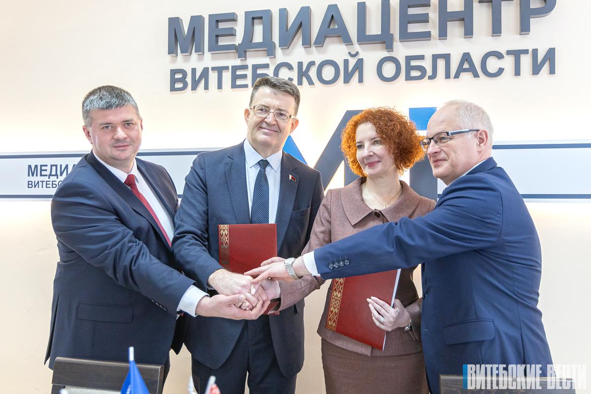 В Медиацентре Витебской области подписали соглашения о сотрудничестве областные профсоюзные организации работников здравоохранения, госучреждений Витебской и Псковской областей.